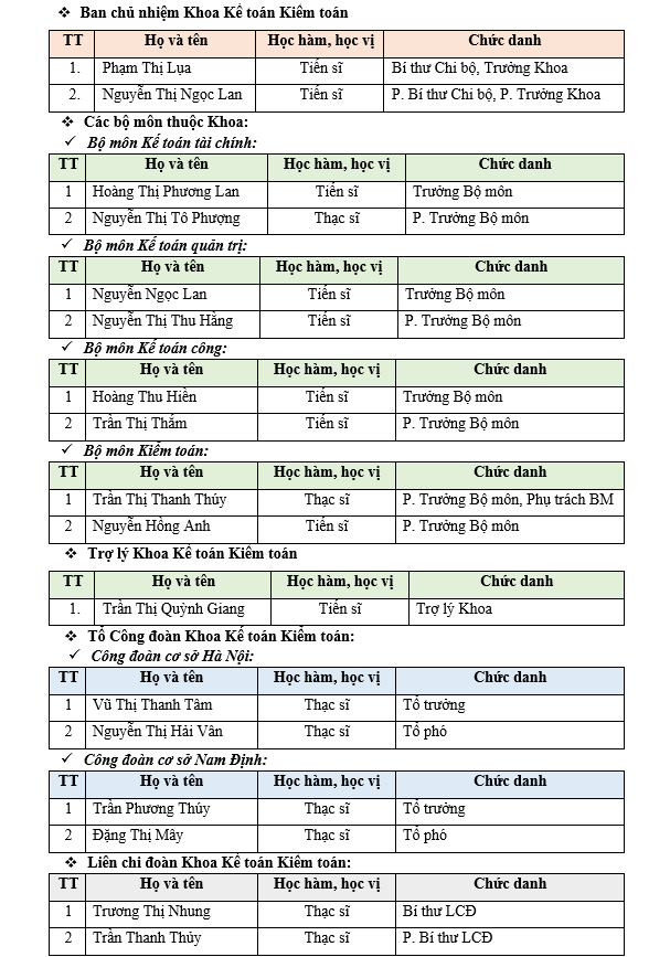 Cơ cấu tổ chức Khoa Kế toán Kiểm toán